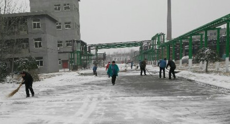 2015年11月24日華北華東地區(qū)下了入冬以來第一場大雪。為了不影響公司的正常生產(chǎn),德州虹橋染料化工有限公司全廠在崗職工在下午下班前趁著雪小了,拿出工具把各衛(wèi)生區(qū)道路上的雪清掃了一遍。公司總工會希望玫瑰精,苯胺黑,元青,間硝基苯磺酸鈉等車間及其它部門的坐不上班車的職工在上下班途中注意雪天路滑,謹(jǐn)慎慢行,安全到達(dá)。
